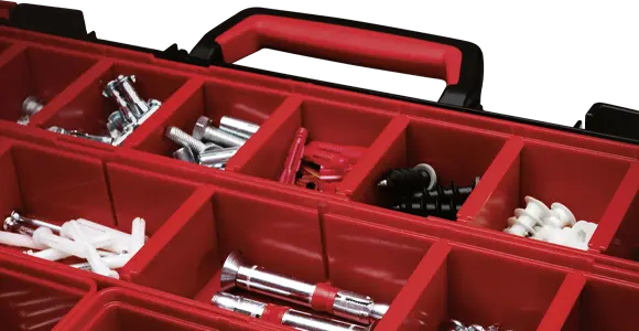 Størrelsen på sortimenterne og den gennemtænkte inddeling bruger pladsen optimalt uden spildplads og holder det hele godt beskyttet under transport.